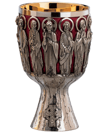| Relieve repujado de Cristo y los Apóstoles sobre fondo en esmalte a fuego rojo. Cruz celta en la base.