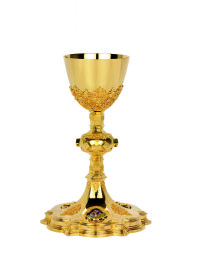 | Diseño gótico tradicional de estilo elegante. Con una técnica excepcional de filigrana que aporta al cáliz la presencia de los cálices históricos de finales del s. XIX. Los tres medallones de la base están realizados en esmalte a fuego de alta calidad