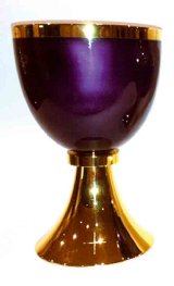 Latón dorado, copa plata de ley con esmalte a fuego.
