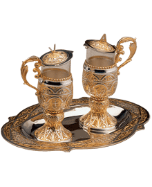 Juego de Vinajeras "Tassilo". Los interiores de las vinajeras son de cristal.